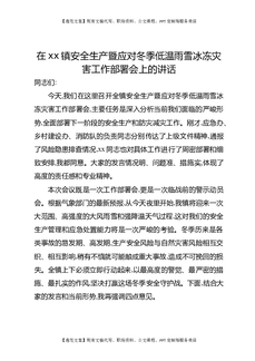在XX镇安全生产暨应对冬季低温雨雪冰冻灾害工作部署会上的讲话.docx