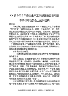 XX镇2026年安全生产工作部署暨百日攻坚专项行动动员会上的讲话稿.docx