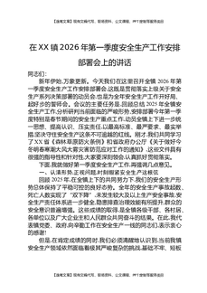 在XX镇2026年第一季度安全生产工作安排部署会上的讲话.docx