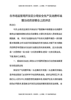 在市场监管局开发区分局安全生产及消费环境整治动员部署会上的讲话.docx