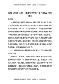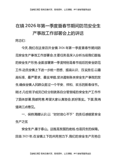 在镇2026年第一季度暨春节期间防范安全生产事故工作部署会上的讲话.docx