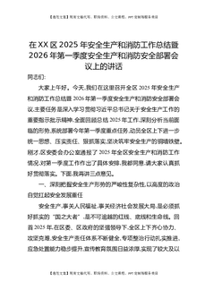 在XX区2025年安全生产和消防工作总结暨2026年第一季度安全生产和消防安全部署会议上的讲话(精品).docx