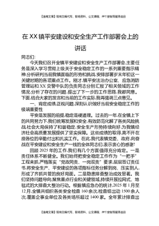 在XX镇平安建设和安全生产工作部署会上的讲话.docx