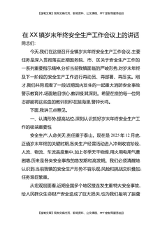 在XX镇岁末年终安全生产工作会议上的讲话.docx