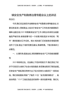 镇安全生产和隐患治理专题会议上的讲话.docx