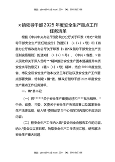 X镇领导干部2025年度安全生产重点工作任务清单.docx