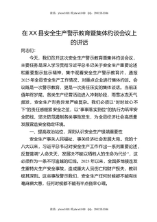 在XX县安全生产警示教育暨集体约谈会议上的讲话.docx