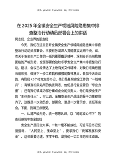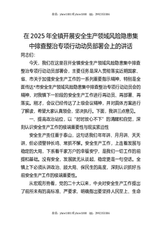 在2025年全镇安全生产领域风险隐患集中排查整治行动动员部署会上的讲话.docx