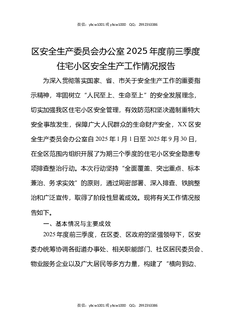 区安全生产委员会办公室2025年度前三季度住宅小区安全生产工作情况报告.docx