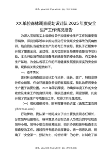 XX单位森林调查规划设计队2025年度安全生产工作情况报告.docx