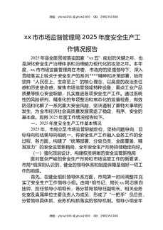 XX市市场监督管理局2025年度安全生产工作情况报告.docx
