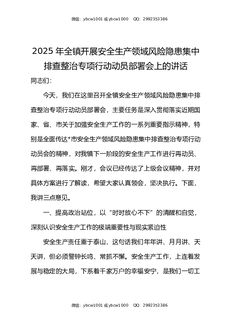 2025年全镇开展安全生产领域风险隐患集中排查整治专项行动动员部署会上的讲话.docx