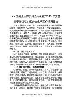 XX区安全生产委员会办公室2025年度前三季度住宅小区安全生产工作情况报告.docx