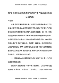 区文体旅行业冬春季安全生产工作会议讲话稿文旅系统.docx
