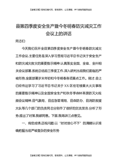 县第四季度安全生产暨今冬明春防灾减灾工作会议上的讲话.docx