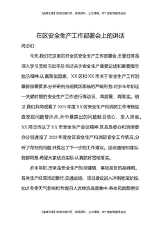 在区安全生产工作部署会上的讲话.docx