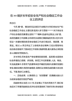 在XX镇岁末年初安全生产和社会稳定工作会议上的讲话.docx