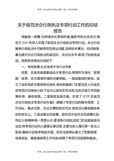 关于规范涉企行政执法专项行动工作的总结报告.docx