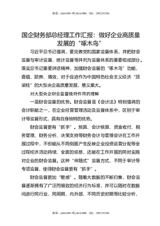 国企财务部总经理工作汇报:做好企业高质量发展的“啄木鸟”.docx