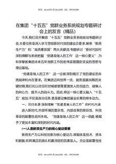 在集团“十五五”党群业务系统规划专题研讨会上的发言(精品).docx