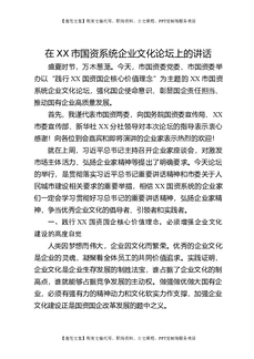 在XX市国资系统企业文化论坛上的讲话.doc
