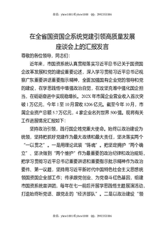 在全省国资国企系统党建引领高质量发展座谈会上的汇报发言.docx