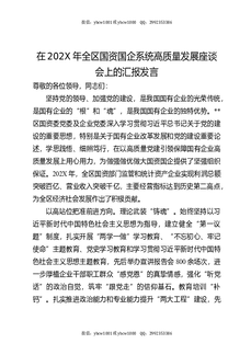 在202X年全区国资国企系统高质量发展座谈会上的汇报发言.docx
