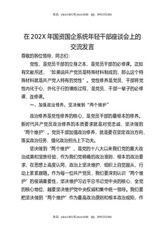 在202X年国资国企系统年轻干部座谈会上的交流发言.docx