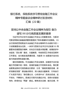银行系统,保险系统学习贯彻金融工作会议精神专题座谈会精神研讨发言材料汇编(22篇).docx