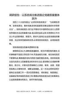 调研报告:以系统观念推进国企党建质量整体跃升.docx