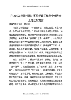 在202X年国资国企系统党建工作年中推进会上的汇报发言.docx