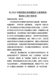 在202X年国资国企系统爱国主义教育现场推进会上的汇报发言.docx