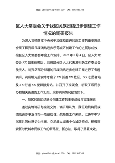 区人大常委会关于区民族团结进步创建工作情况的调研报告.docx