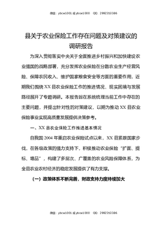 县关于农业保险工作存在问题及对策建议的调研报告.docx