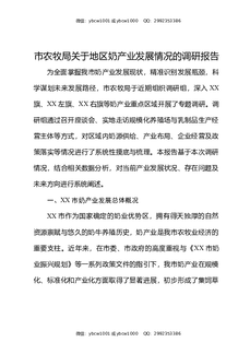 XX市农牧局关于XX地区奶产业发展情况的调研报告(精品).docx
