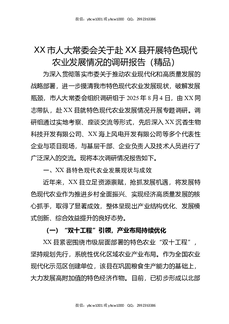 XX市人大常委会关于赴XX县开展特色现代农业发展情况的调研报告(精品).docx