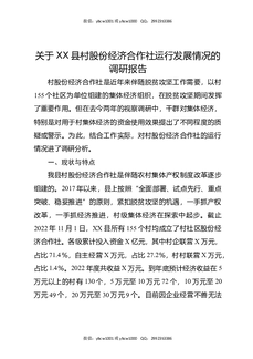 关于XX县村股份经济合作社运行发展情况的调研报告.docx