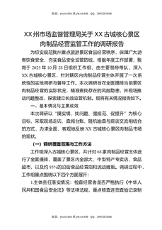 XX州市场监督管理局关于XX古城核心景区肉制品经营监管工作的调研报告.docx