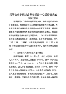 关于全市乡镇综合养老服务中心运行情况的调研报告.docx