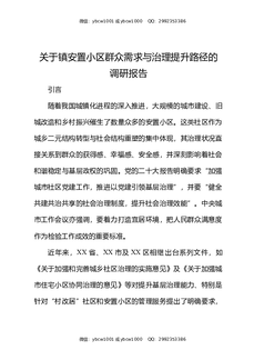 关于XX区XX镇安置小区群众需求与治理提升路径的调研报告.docx