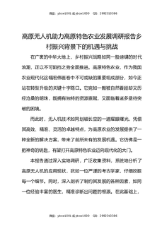 高原无人机助力高原特色农业发展调研报告:乡村振兴背景下的机遇与挑战.docx