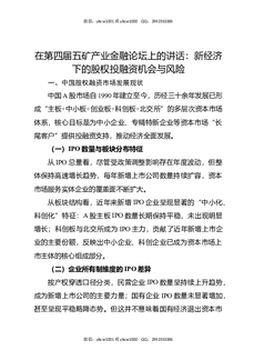 在第四届五矿产业金融论坛上的讲话:新经济下的股权投融资机会与风险.docx