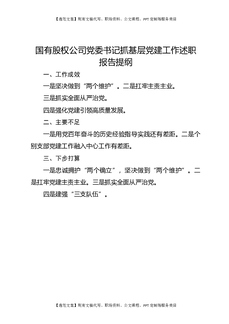 国有股权公司党委书记抓基层党建工作述职报告提纲.docx