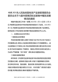中共XX市人民政府国有资产监督管理委员会委员会关于六届市委第四轮巡察集中整改进展情况的通报.docx
