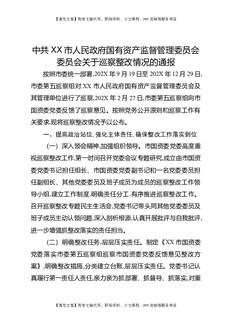 中共XX市人民政府国有资产监督管理委员会委员会关于巡察整改情况的通报.docx