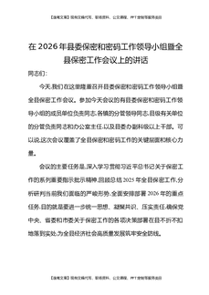 在2026年县委保密和密码工作领导小组暨全县保密工作会议上的讲话.docx
