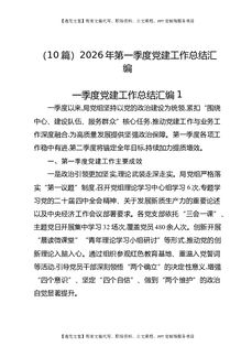 (10篇)2026年第一季度党建工作总结汇编.docx
