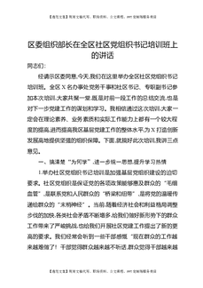 区委组织部长在全区社区党组织书记培训班上的讲话.docx