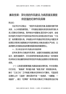 廉政党课:深化党的作风建设,为高质量发展提供坚强的纪律作风保障.docx