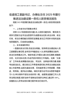 街道党工委副书记、办事处主任2025年履行推进法治建设第一责任人职责情况报告.docx